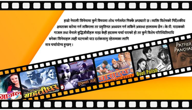 यता हाम्रो नेपाली सिनेमामा कुनै विषयमा शोध गर्नसमेत निक्कै अप्ठ्यारो छ । व्यक्ति विशेषको निर्देशकीय क्षमताका बारेमा गर्न सकिएला तर प्रवृत्तिगत अध्ययन गर्न सकिने अवस्था हालसम्म छैन । के.पी. पाठकको गाजल तथा मैनाले बुद्धिजीवीहरू माझ केही हदसम्म चर्चा पाएको हो तर कुनै विशेष परिस्थितिमाथि बनेका सिनेमाहरू त्यही घटनाको घाउ दर्शकसामु रहेसम्मका लागि मात्र चर्चायोग्य हुन्छन् । विश्वको परिवेशमा हेर्दा नरसंहारकारी विश्वयुद्ध जनित घटनापश्चात् यस्ता सिनेमा बनेका पाइन्छन् भने भारतमा पनि सन् सत्तरीको दशकको उथलपुथलकारी नक्सलवादी विद्रोह, बङ्गालको विकराल गरिबी तथा हैदरावादको तेलङ्गना विद्रोह आदिजस्ता घटना पछि तिनको भित्री आत्मा छाम्न सक्ने सिनेकर्मीहरूबाट केही यथार्थवादी सिनेमा बनेका छन् । महाश्वेता देवीको उपन्यासमाथि गोविन्द निहलानीद्वारा निर्मित हजार चौरासीयौँ की माँ नै नक्सलवादी आन्दोलनको एउटा मानवीय दस्तावेज हो । नेपालको दस वर्षे युगान्तकारी माओवादी जनयुद्धपश्चात् पनि त्यो विषयसित सम्बन्धित केही सिनेमाहरू नबनेका होइनन् तर जनयुद्धलाई नजिकबाट आत्मसात गरेका निर्देशकहरूको अभावमा ती सिनेमाहरू यथार्थमा आधारित रहेर पनि यथार्थवादी हुन सकेनन्, अझ नवयथार्थवाद खोज्नु त धेरै परको कुरा हो । शहीद बनाएर विजय बस्नेतले केही दर्शक त बटुले तर जनयुद्धको कारक तत्त्व खोज्न बुनिएको कथामा मुम्बईको घटिया फर्मुलायुक्त कथा थोपेरेर विषयको गाम्भीर्यतालाई उनले पनि छुन सकेका छैनन् । आकाश अधिकारी, मीनबहादुर भाम, मिलन चाम्स तथा मनोज पण्डितले योे दिशातिर केही गर्न खोजेको देखिन्छ तर हाम्रो व्याकरणको प्रतिनिधित्वको खोजी गर्ने सामर्थ्य तिनमा पनि पाइएको छैन ।