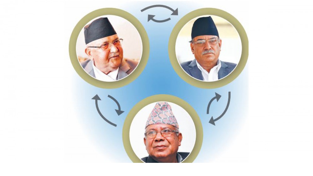 काठमाडौँ — प्रधानमन्त्री एवं अध्यक्ष केपी ओलीले अर्का अध्यक्ष पुष्पकमल दाहालसँग पार्टीका वरिष्ठ नेता माधवकुमार नेपालसँगको सहकार्य तोडेर दुई अध्यक्षबीच सहकार्यको प्रस्ताव गरेका छन् । तर, कार्यकारी अध्यक्ष दाहालले समीकरण बनाउने र भत्काउनेभन्दा सबै समस्याको समाधान जारी स्थायी कमिटी बैठकबाट खोज्नुपर्ने अडान राखेका छन् ।