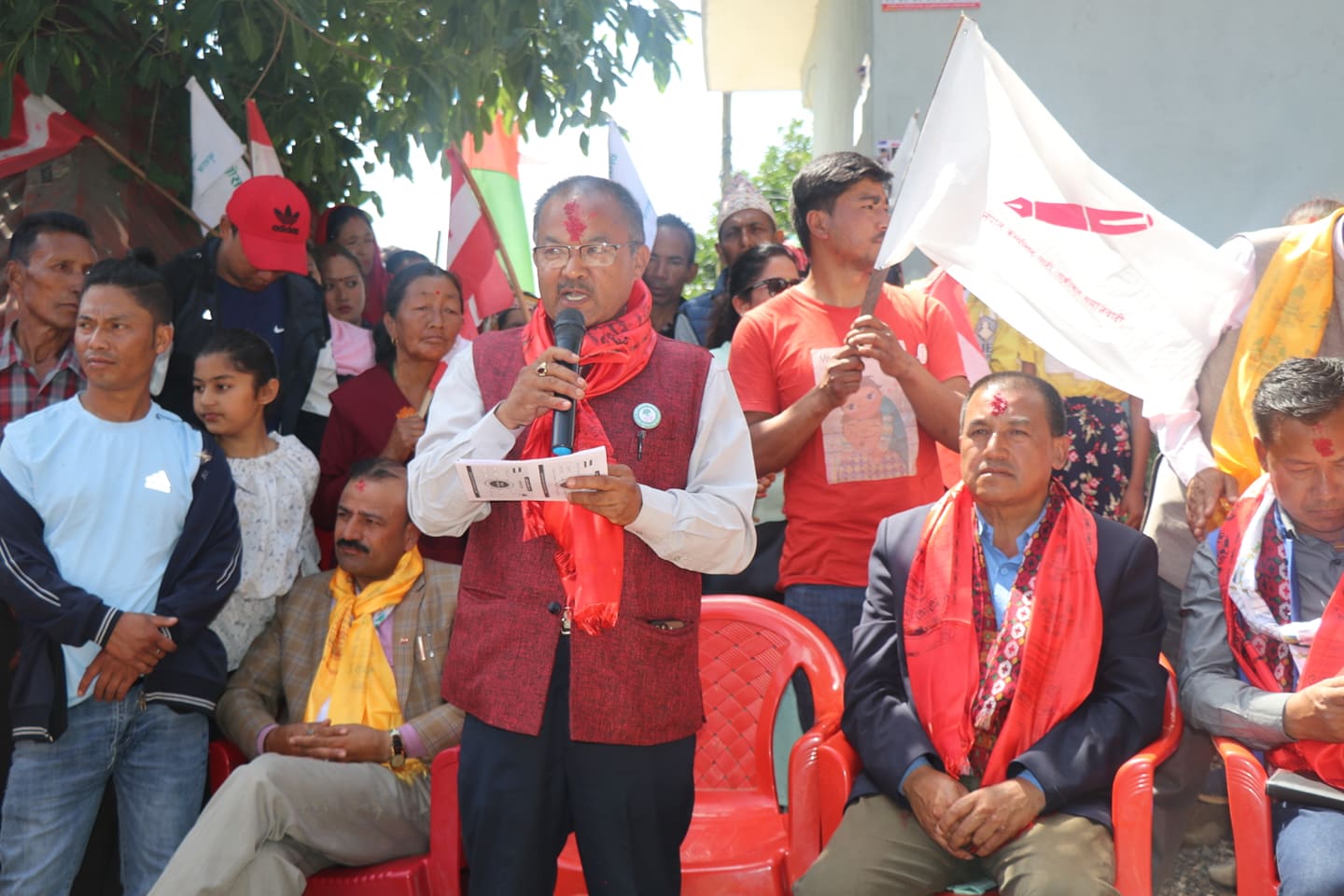 ’ शाक्यले भने, ‘अव हामीलाई जिताउनु भो भने तत्कालै आयोजना सम्पन्न गरी जनतालाई पानीको समस्याबाट मुक्त गर्नेछौँ ।’उनले भने । यस भन्दा अगाडि बनेपा नगरपालिकामा एमाले बाट जितेको यस नगरमा ५ वर्षमा केही काम गर्न नसकेको जनताको आरोप छ ।