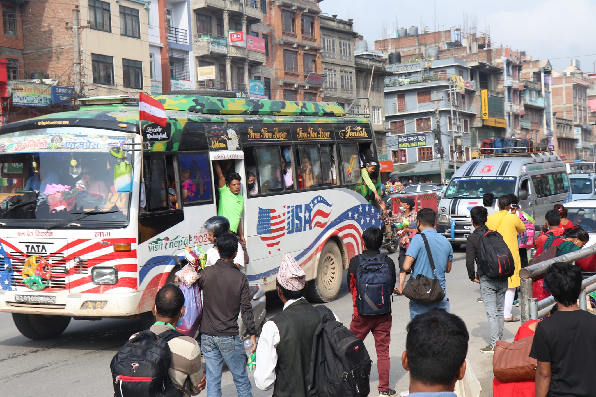 यस्तै, लामो दूरीका बस छुट्ने नयाँ बसपार्कमा पनि यात्रुको भिड छ । गाउँ घर जाने तयारीमा रहेकाहरु बिहानै गाडी चढ्ने ठाउँमा पुगेका छन् । तर, उनीहरुलाई गाडी पाउन मुस्किल छ । गाडीको खोजीमा रहेका यात्रुको भिड सडकको छेउसम्मै छ ।