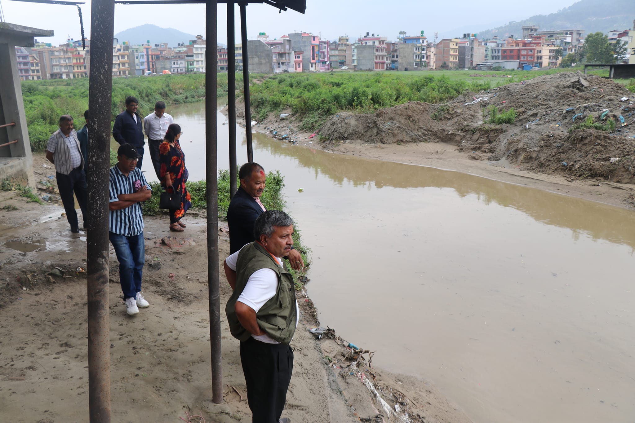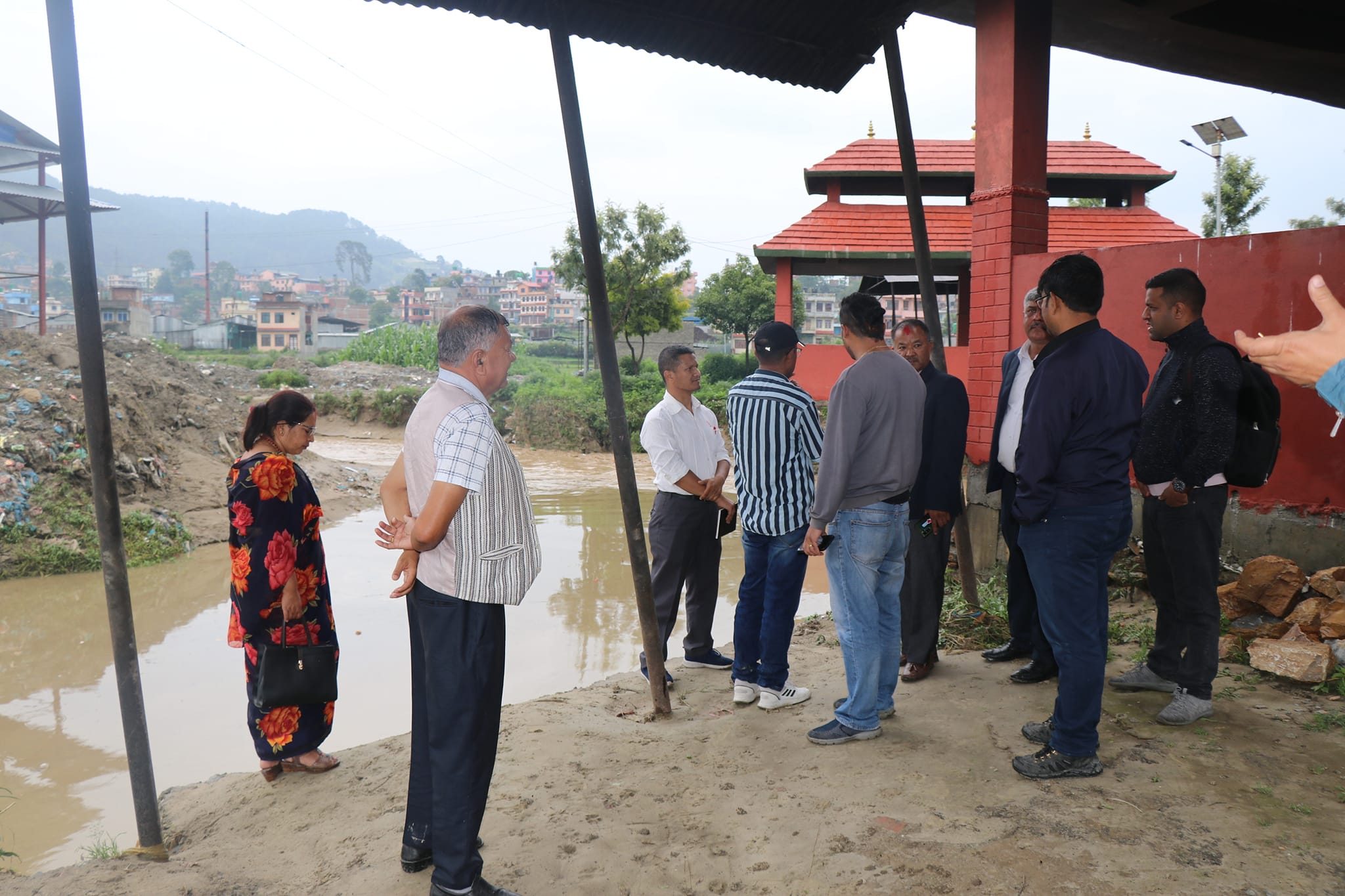 अवलोकन सगैं यस भेगमा पानी परे लगतै किन ढुवानको समस्या रहेको भन्दै स्थानिय सग नगर प्रमुख शाक्यले आवश्यक सल्लाह र परामर्श लिएका छन् । स्थानियले यस क्षेत्रमा खोलानालाको व्यवस्थापन राम्रो सग नभएको र खोलामा फोहोर फ्यानुले पनि समस्या आएको बताएका थिए ।