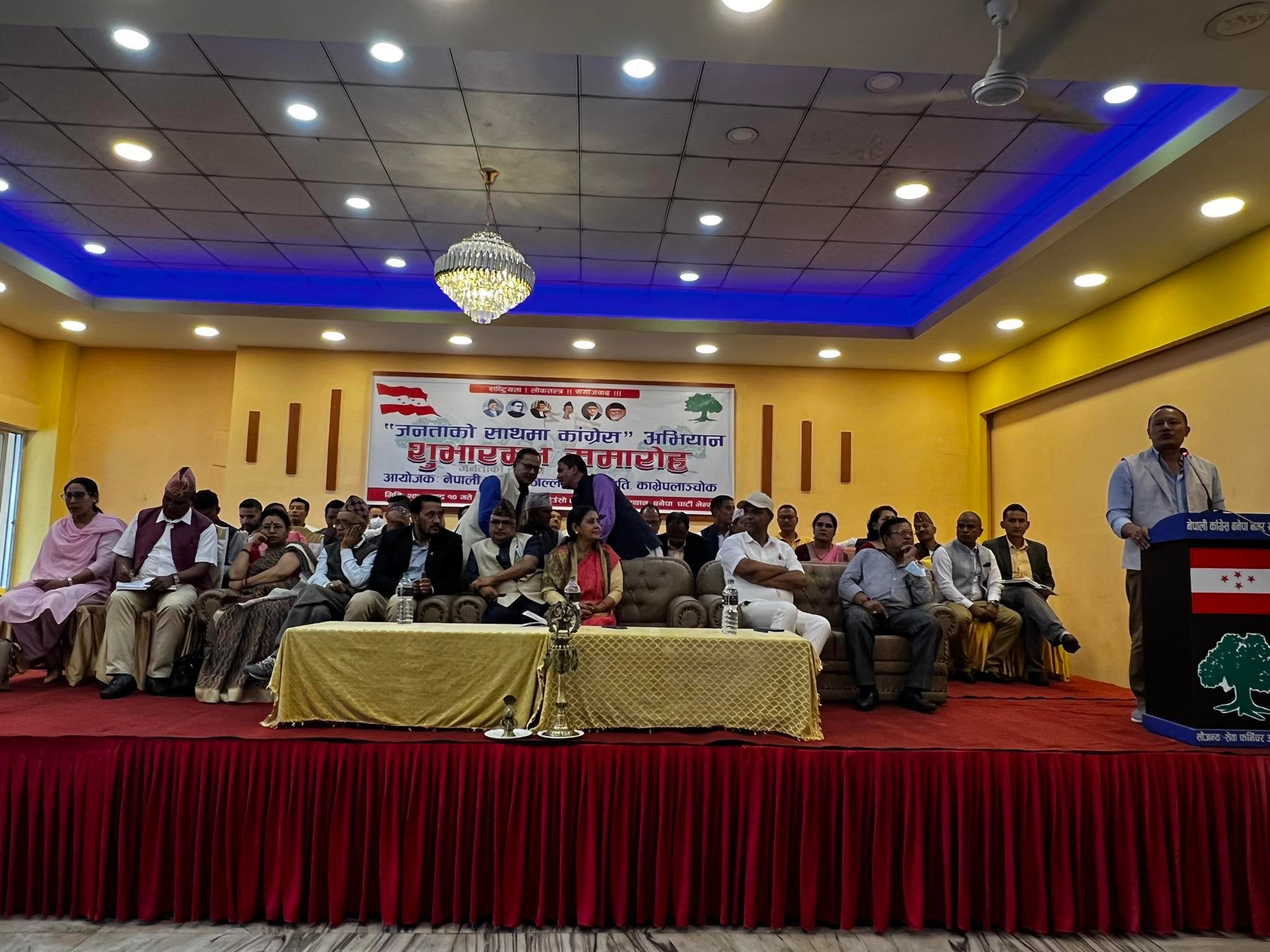 काभ्रे/ काभ्रे जिल्लामा जनताको साथमा कांग्रेस अभियान सुरु भएको छ । नेपाली कांग्रेस केन्द्रीय समितिको आगामी मंसिर ४ गते संघ र प्रदेशको निर्बाचनमा पार्टीको पक्षमा माहोल सिर्जना गर्न यही भदौ १० गतेदेखी २४ गतेसम्म जनताको साथमा कांग्रेस अभियान संचालन गर्ने परिपत्र अनुसार शुक्रबार देखि काभ्रेमा पनि जनताको साथमा कांग्रेस अभियान सुरु गरिएको हो ।