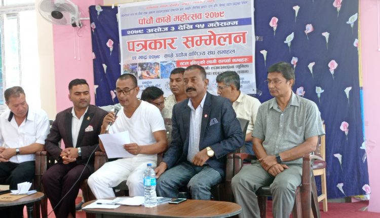 काभ्रे /“व्यावसायिक लगानी अभिवृद्धि, काभ्रेको समुन्नति र समृद्धि” भन्ने मुल नाराका साथ बनेपामा पाँचौ पटक महोत्सवको आयोजन ागर्न लागेको उद्योग बाणिज्य संघ काभ्रेले जनाएको छ ।