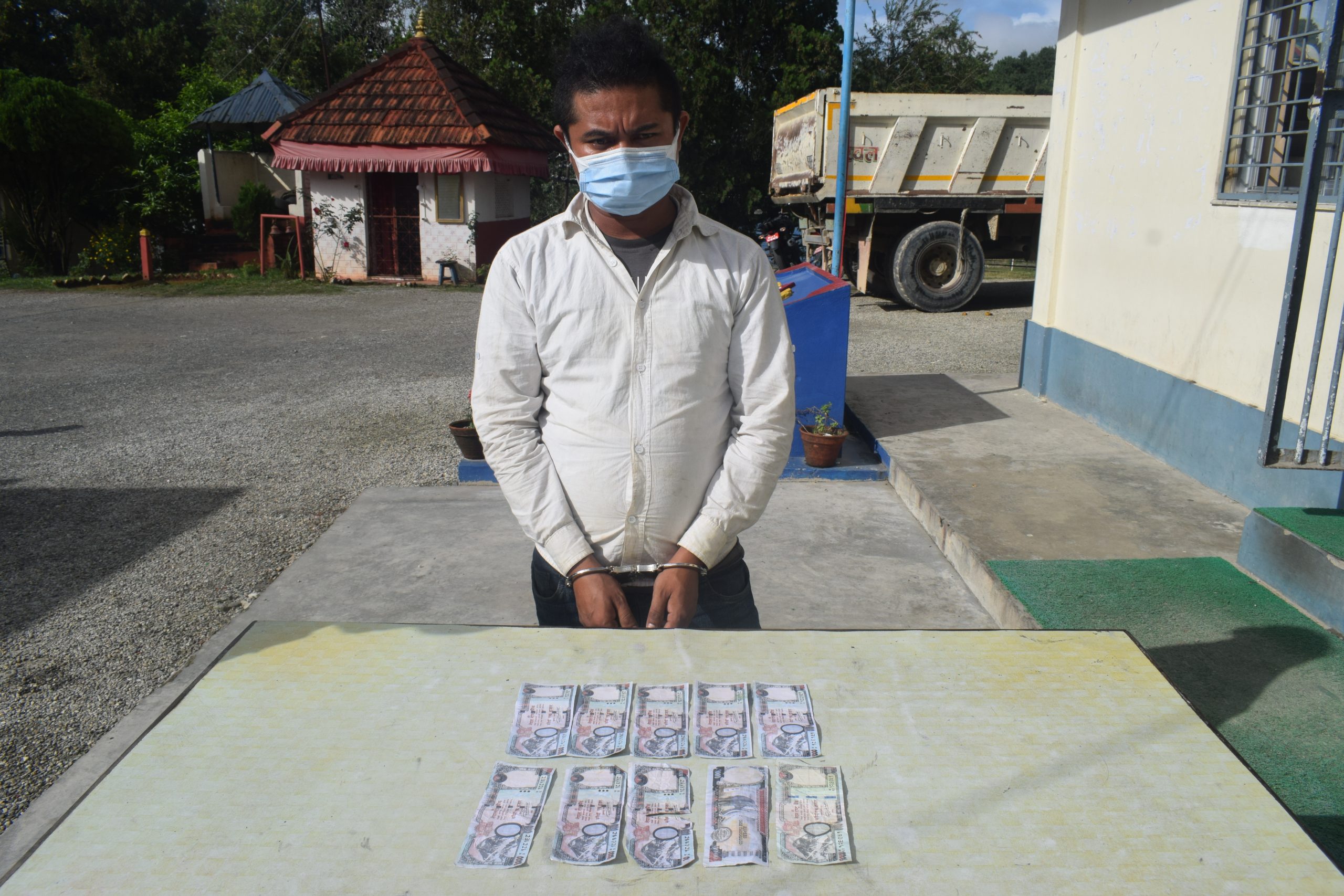 नेपाली नक्कली रुपियाँ सहित एक जना पक्राऊ परेका छन् । भदौ २३ गते काभ्रे जिल्लाको रोशी गाउँपालिका वडा नं। ०७ बडारे गाउँ स्थितमा जिल्ला मकवानपुर हेटौडा उपमहानगरपालिका वडा नं। ०८ कमाने घर हुने वर्ष ३० को नारायण पाख्रिनले नम्कली नेपाली रुपैयाको नोटहरु बोकी हिडी रहेको छ भन्ने जिल्ला प्रहरी कार्यालय काभ्रे लाई आएको बिशेष सूचनाको आधारमा उनलाई पक्राउ गरिएको जिल्ला प्रहरी कार्यालय काभ्रेका सूचना अधिकारी प्रहरी नायब उपरीक्षक ढुण्डीराज न्यौपानेले बताए । उनका अनुसार सूचना पश्चात तत्काल जिल्ला प्रहरी कार्यालय काभ्रेले तत्काल ईलाका प्रहरी कार्यालय मंगलटार र प्रहरी चौकी कटुन्जेबेशीबाट खटिएको प्रहरी अधिकृत सहितको टोलीले कानुन बमोजिम नियन्त्रणमा लिई निजको शरिर समेत तलासी गर्दा ९थान हजारको परिमाणमा १ हजार दरको नेपाली रुपैया नारायण पाख्रिनको साथबाट बरामद गरी पाख्रिनलाई पक्राउ गरी थप अनुसन्धान गरी ूमुलुकी अपराध संहिता, २०७४ू को परिच्छेद २२ मुद्रा सम्बन्धी कसूरमा काभ्रे जिल्ला अदालतबाट ७ दिनको म्याद थप अनुमती लिई प्रहरी हिरासत कक्षमा राखी थप अनुसन्धान कार्य भईरहेको व्यहोरा जानकारी दिए । पाख्रिनको साथबाट नक्कली नेपाली रुपैया १००० दरको थान ९,सक्कली नेपाली रुपैया १००० दरको थान १ बरामद गरिएको छ ।