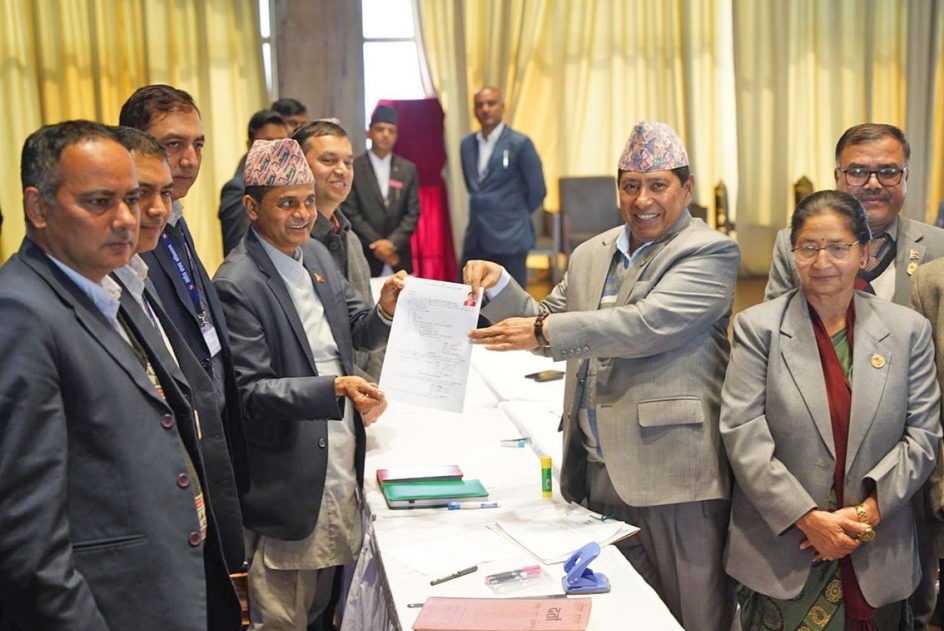 अर्यालको प्रस्तावकमा नारायणकाजी श्रेष्ठ र देवेन्द्र दाहाल र खिमलाल देवकोटा समर्थक रहेका छन् । नेपाली कांग्रेसले पनि उम्मेदवारी नदिने निर्णय गरेका कारण अर्याल निर्विरोध निर्वाचित हुने सम्भावना रहेको छ ।