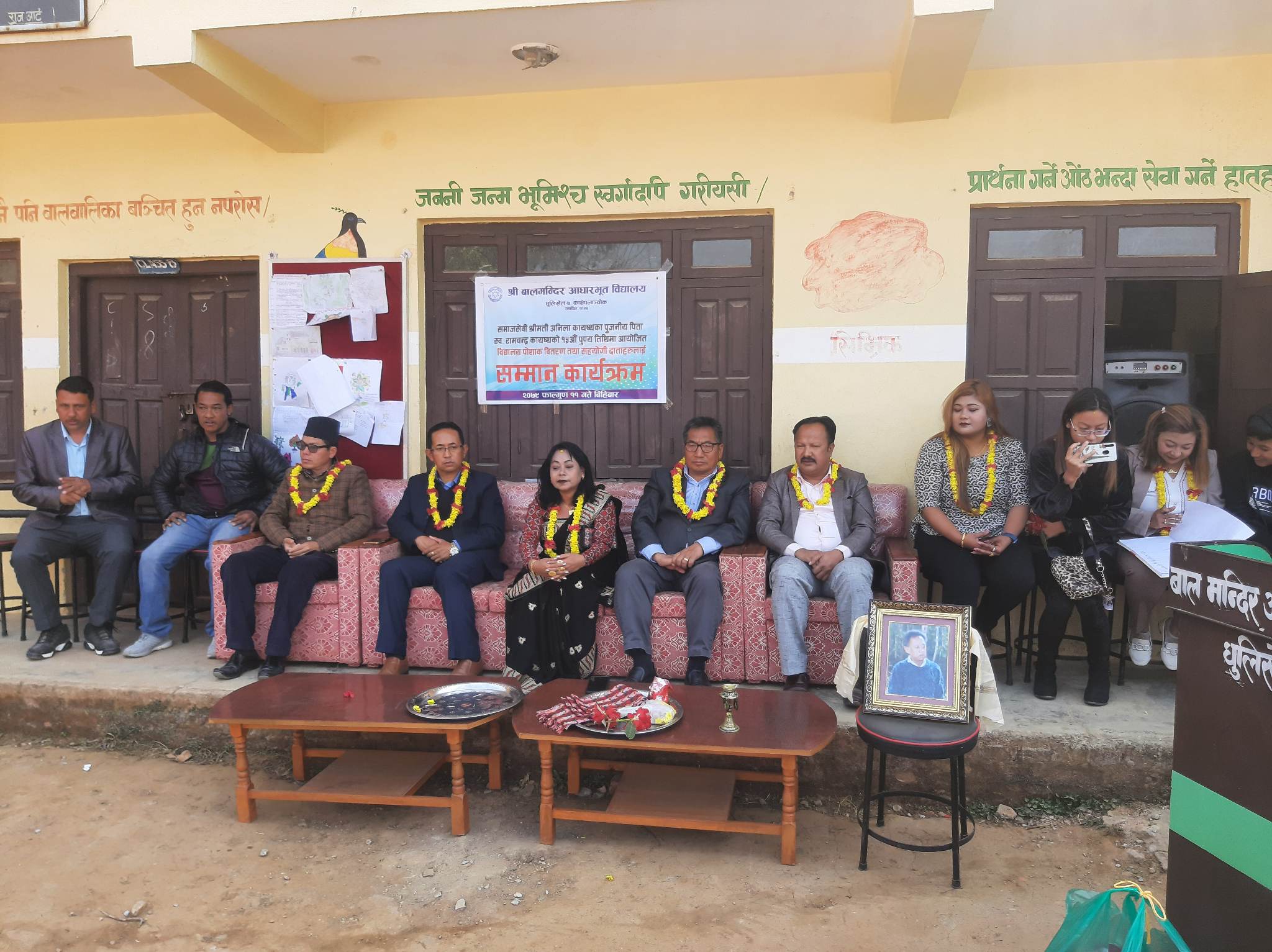 कार्यक्रममा धुलिखेल नगरपालिकाका शिक्षा युवा तथा खेलकुद शाखा प्रमुख भोजकुमार ठकुरी, विद्यालय व्यवस्थापन समितिका अध्यक्ष प्रेमकण्ठ माकजु लगायतले विद्यालयलाई सहयोग गरेको प्रति धन्यावाद दिदै भोलिका दिनमा समेत यस कार्यका लागि सधैव साथ दिन समेत आग्रह गरेका थिए ।