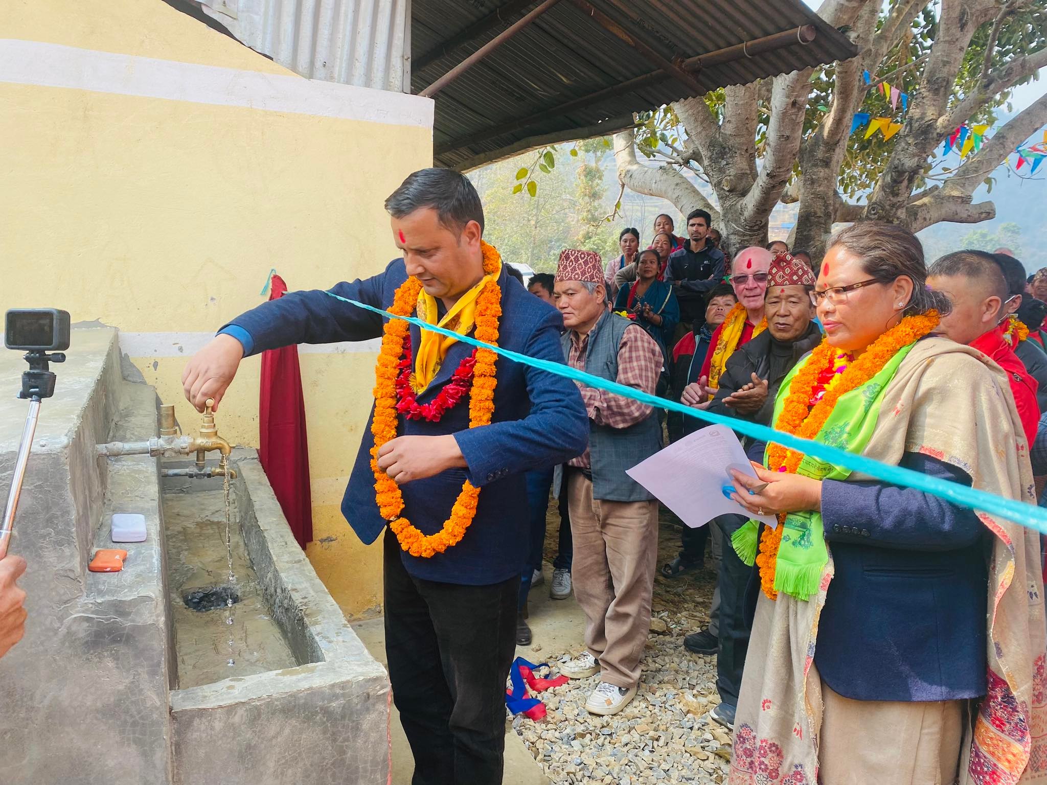 कार्यक्रममा उनले रोटरी क्लब बौद्ध, रोटरी क्लब स्कटल्याण्डका प्रतिनिधि, नेवा र बेथानचोक गाउँपालिका र स्थानीय श्रमदानसमेतबाट करिब १४ सय जनसंख्याका लागि खानेपानी सहज बनाउनुहुने स्थानीय, अग्रज, श्रमदाताहरुप्रति आभार प्रकट व्यक्त गरे । “गाउँपालिकाका नागरिकको ओठमा खुसी ल्याउन मद्दत गर्नुहुने सबैमा हार्दिक आभार प्रकट गर्दछु ।” उनले भने ।