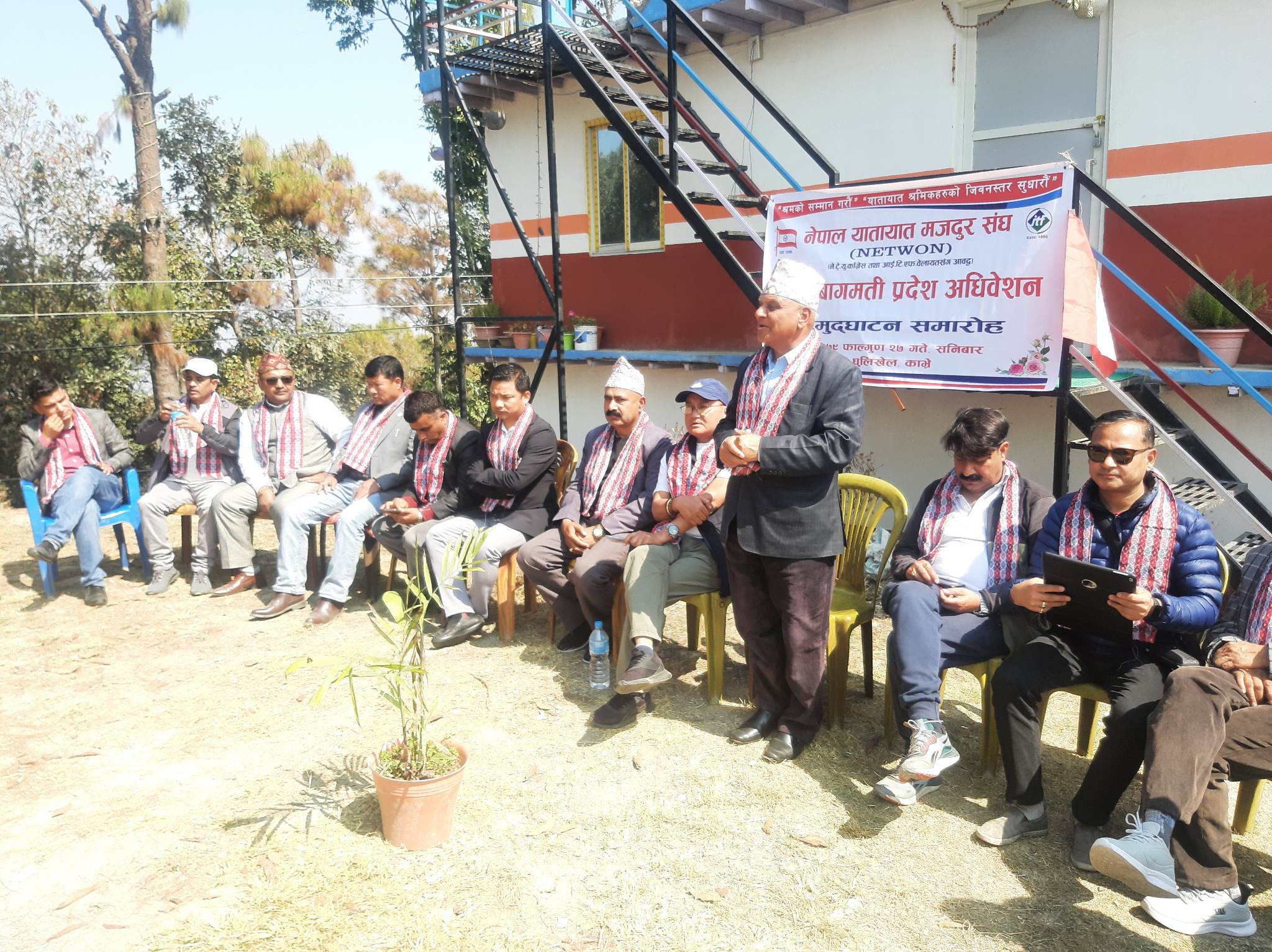कार्यक्रममा स्वागत मन्तव्य नेपाल यातायात मजदुर सघ काभ्रे जिल्लाका पूर्व अध्यक्ष सतोष गौतमले गरेका थिए ।