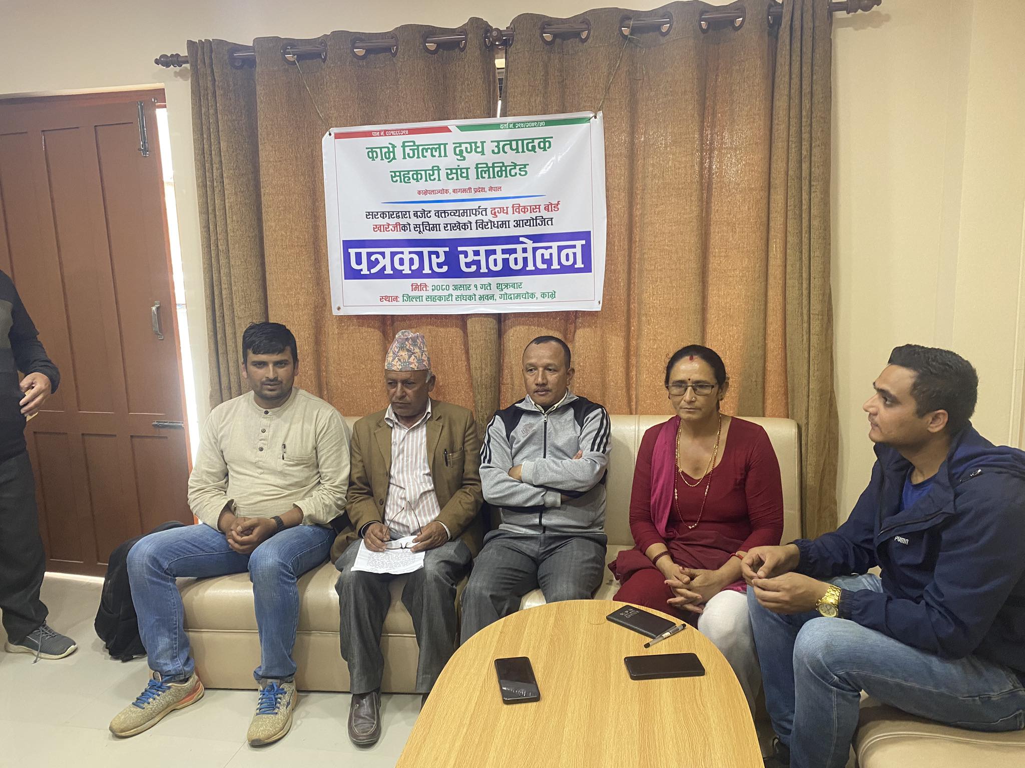 उनले काभ्रेको वस्तुस्थिति जानकारी गराउँदै काभ्रे जिल्लामा दुग्ध उत्पादक सहकारी संघ लि. मा आबद्ध भएका १६ वटा दुग्ध सहकारी तथा केही निजी क्षेत्रले कृषकले उत्पादन गरेका करिव ३ लाख लिटर दूध काठमाडौ लगायत देशका विभिन्न शहरहरूमा सञ्चालन भएका डेरी उद्योगहरु रहेका र मेन्डर द्वारा साना डेरी तथा घर घरमा पुत्र्याई कृषकले उत्पादन उपभोक्तामा विक्रि गरी सहरको रकम गाउँको कृषकको हातमा पुन्याउदै आएको बताए । उनले दूध क्षेत्रमा संग्लन कृषक, उद्यमी, उपभोक्ता र सरकार विचमा रही दुग्ध क्षेत्रको निती निर्माण विकास गर्न उद्देश्यले गठन भएको राष्ट्रिय दुग्ध विकास बोर्डलाई आ.व. २०८०/०८१ जेष्ठ २५ गतेको बजेट तथा निती कार्यक्रममा राष्ट्रिय दुग्ध विकास बोर्ड लाई खारेजीको प्रस्ताव प्रति यस काभ्रे जिल्ला दुग्ध उत्पादक सहकारी संघ गम्भीर आपत्ती जनाउँछ । नेपाल सरकारको यलमा रहेको कमी कमजोरी हटाई कृषक, उद्योगी उपभोक्ता र सरकारको पुलको रुपमा राष्ट्रिय दुग्ध विकास बोर्डलाई यथावत कायम गर्न माग गरेका छन् । कार्यक्रममा जिल्ला दुग्ध उत्पादक सहकारी संघका उपाध्यक्ष लीला नेपाल, नेपाल पत्रकार महासंघ बागमती प्रदेश सदस्य पेमा लामा, नेपाल पत्रकार महासंघ का कार्यसमिति सदस्य शुकदेव थपलिया, प्रेस सेन्टर काभ्रेका अध्यक्ष रोजन तामाङ प्रेस चौतारी का केन्द्रिय सदस्य केशवराज पौडेल, समाजवादी प्रेस संगठनका सन्तोष चौलागाई लगायत पत्रकार सम्मेलनमा उपस्थित थिए ।