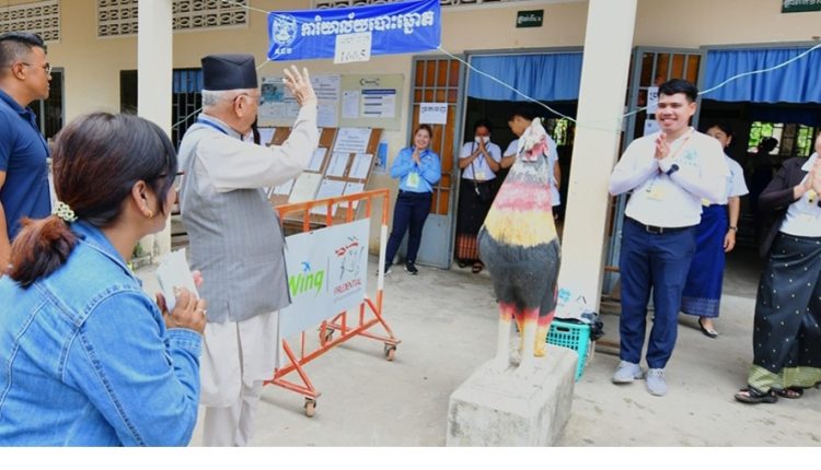 काठमाडौं । नेकपा (एमाले)का अध्यक्ष केपी शर्मा ओलीले आइतबार कम्बोडियामा भएको निर्वाचनको पर्यवेक्षण गरेका छन् । उनले तीनवटा मतदान केन्द्रमा पुगी पर्यवेक्षण गरेको उनको सचिवालयले जनाएको छ ।