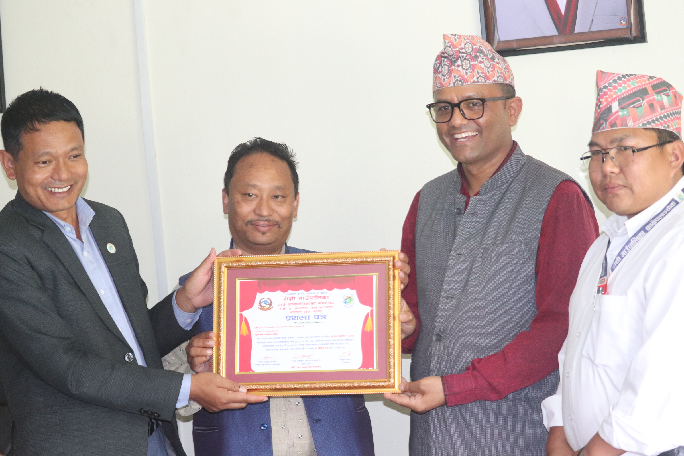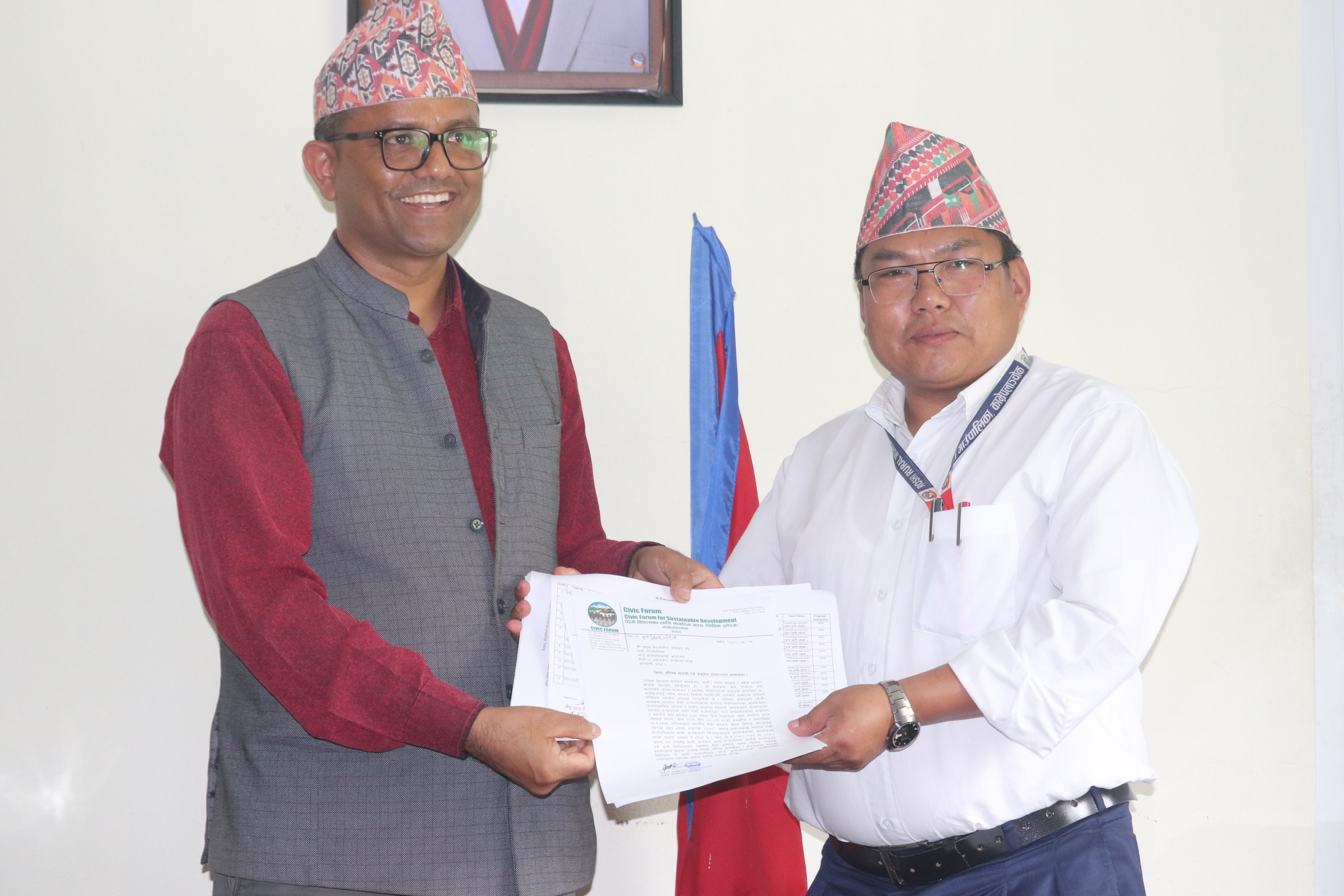 सिविक फोरमका प्रतिनिधि वसन्त कुवरले गाउँपालिकाका प्रमुख प्रशासकीय अधिकृत रामबहादुर तामाङलाई उक्त कागजात हस्तान्तरण गरेका छन् । हस्तान्तरण कार्यक्रममा गाउँपालिकाका अध्यक्ष दिनेश लामा, उपाध्यक्ष मिमबहादुर वाईवा लगायतको उपस्थिती रहेको थियो ।