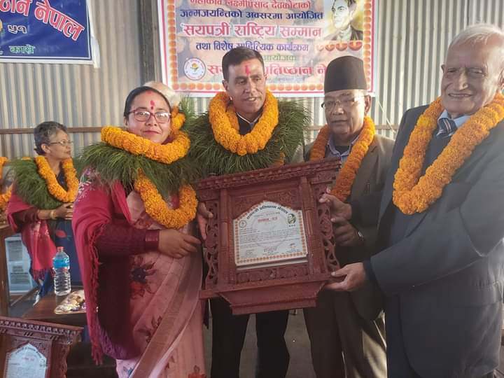 सोही अनुरुप यस वर्ष एक साहित्यिक कार्यक्रमका बीच सयपत्री प्रतिष्ठान नेपाल का सल्लाहकार तथा कार्यक्रम संयोजक मोहन दुवालको सभापतित्व, शिक्षाविद तथा काठमाडौँ विश्वविद्यालयका संस्थापक उपकुलपति प्रा.डा. सुरेशराज शर्माको प्रमुख आतिथ्यतामा सयपत्री राष्ट्रिय सम्मानद्वारा वरिष्ठ साहित्यकार प्रा. डा. अभि सुवेदी र साहित्यकार रामसुन्दर देउजा दम्पतीलाई सम्मान गरिएको हो ।