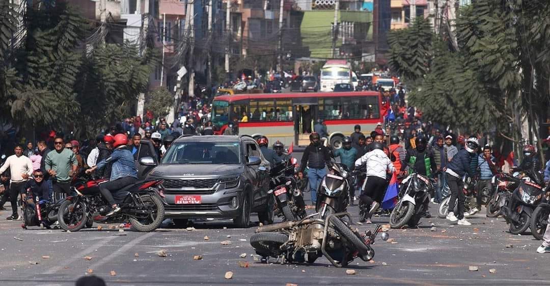 काठमाडौंको बल्खु चोकमा ढुंगामुढा र तोडफोड भएको हो ।