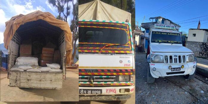 बैतडी । जिल्ला प्रहरी कार्यालय बैतडी प्रहरी प्रमुख दिपक गिरीले विशेष सुचनाका आधारमा भन्सार छली ल्याएको लाखौ मूल्य बराबरको सामान सहित गाडिलाई नियन्त्रणमा लिएका छन् । बैतडीका प्रमुख प्रहरी नायव उपरीक्षक (डीएस्पी) दिपक गिरीका अनुसार मंगलबार जीप र बुधबार सामान सहितको ट्रक नियन्त्रणमा लिएको हो । डिएस्पी गिरीका अनुसार “महाकाली नदिमा ट्युब तथा डुङ्गाको प्रयोग गरी भारतबाट प्याज, चिनी, सुर्तिजन्य पदार्थ लगायतका किराना सामान ग्रामिण सडक हुदै जिल्ला भित्रिदैं छ भन्ने सूचनाका आधारमा नियन्त्रणमा लिएको बताए ।