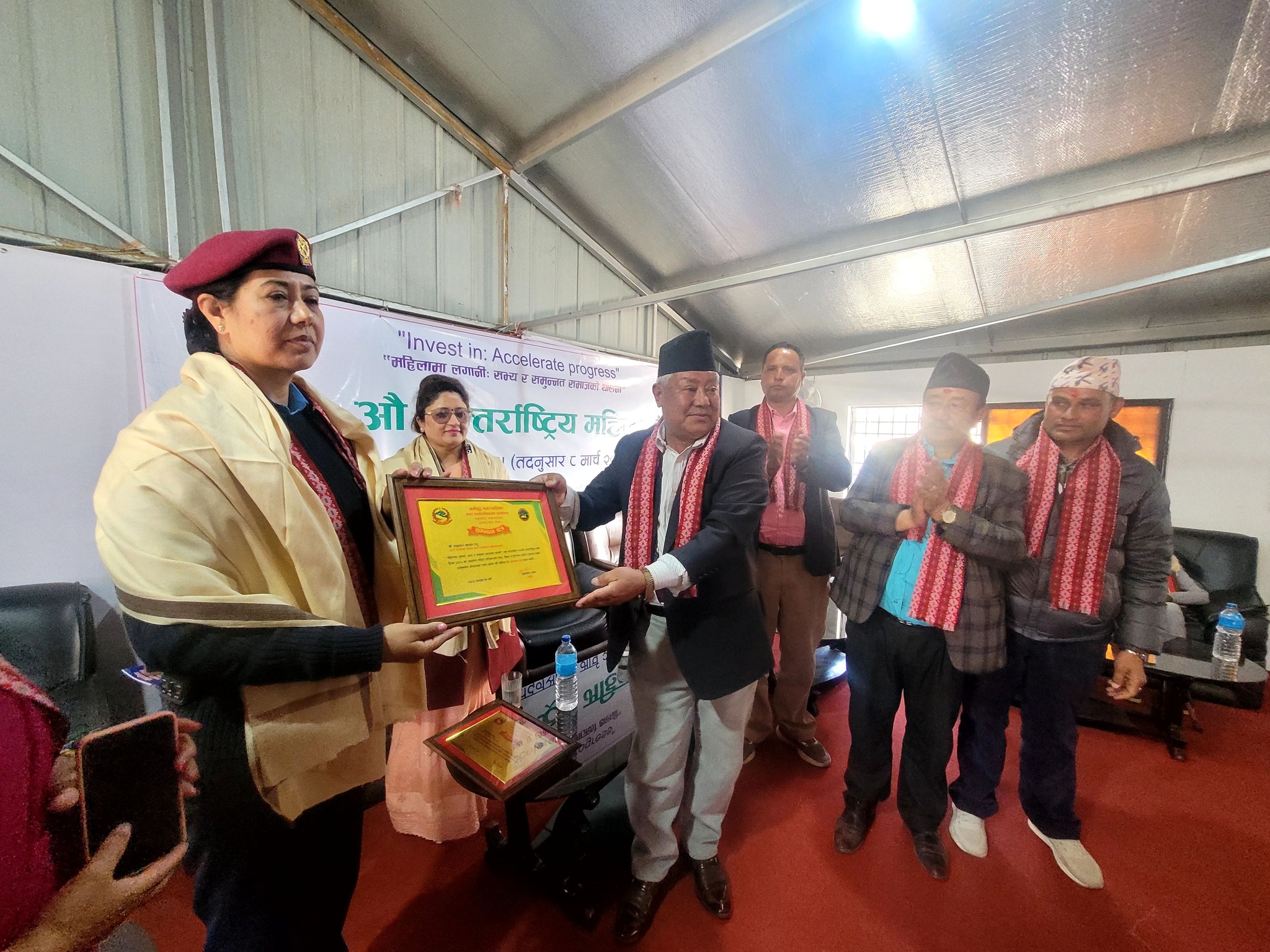 नगरपालिकाको हलमा आयोजित कार्यक्रममा काभ्रे जिल्लाका ११ सरकारी कार्यालयको नेतृत्व गरिरहेका महिला, मानवअधिकारकर्मी र जेष्ठ नागरिकलाई सम्मान गरेको हो ।जिल्लाको प्रशासनिक नेतृत्व गर्ने प्रमुख जिल्ला अधिकारी रुद्रादेवी शर्मा, जिल्ला प्रहरी प्रमुख प्रहरी उपरिक्षक (एसपी) बसुन्धरा खड्का, स्वास्थ्य कार्यालय प्रमुख अनिता खनाल, पशु सेवा कार्यालय प्रमुख डा. श्रृृजा वाग्ले, जिल्ला आयुर्वेद स्वास्थ्य केन्द्रका प्रमुख डा.वशंवदा कौडिन्न्यायनी, शिक्षा विकास तथा समन्वय इकाई प्रमुख देवका ढकाल, खाद्य प्रविधी तथा गुण नियन्त्रण डिभिजन कार्यालय प्रमुख मनिषा चापागाई, स्वास्थ्य बिमा बोर्ड काभ्रेका संयोजक मुना निरौला, पनौती जलविद्युत्त केन्द्र प्रमुख सविना उप्रेती, गुठी संस्थान प्रमुख उर्मिला आचार्य, राष्ट्रिय विमा कम्पनी लिमिटेड प्रमुख चण्डिका सापकोटालाई सम्मान पत्र प्रदान गरिएको छ ।