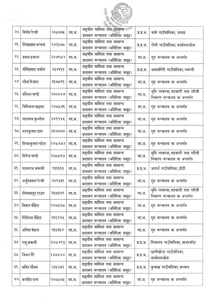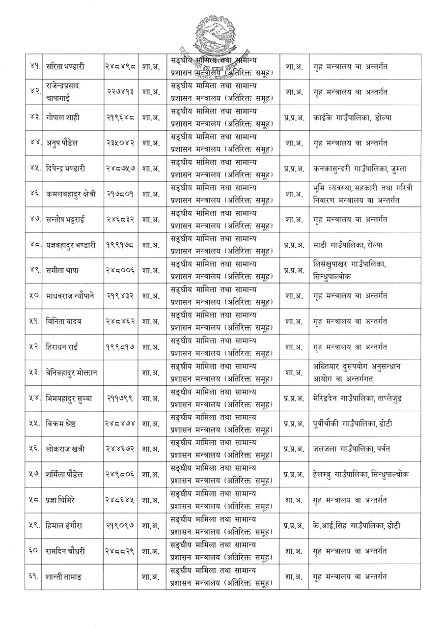 उनीहरुले संघ र स्थानीय तहका विभिन्न पदमा जिम्मेवारी पाएका छन् । मंगलबार मात्रै ३० वटा स्थानीय तहले प्रमुख प्रशासकीय अधिकृत पाएका छन् ।