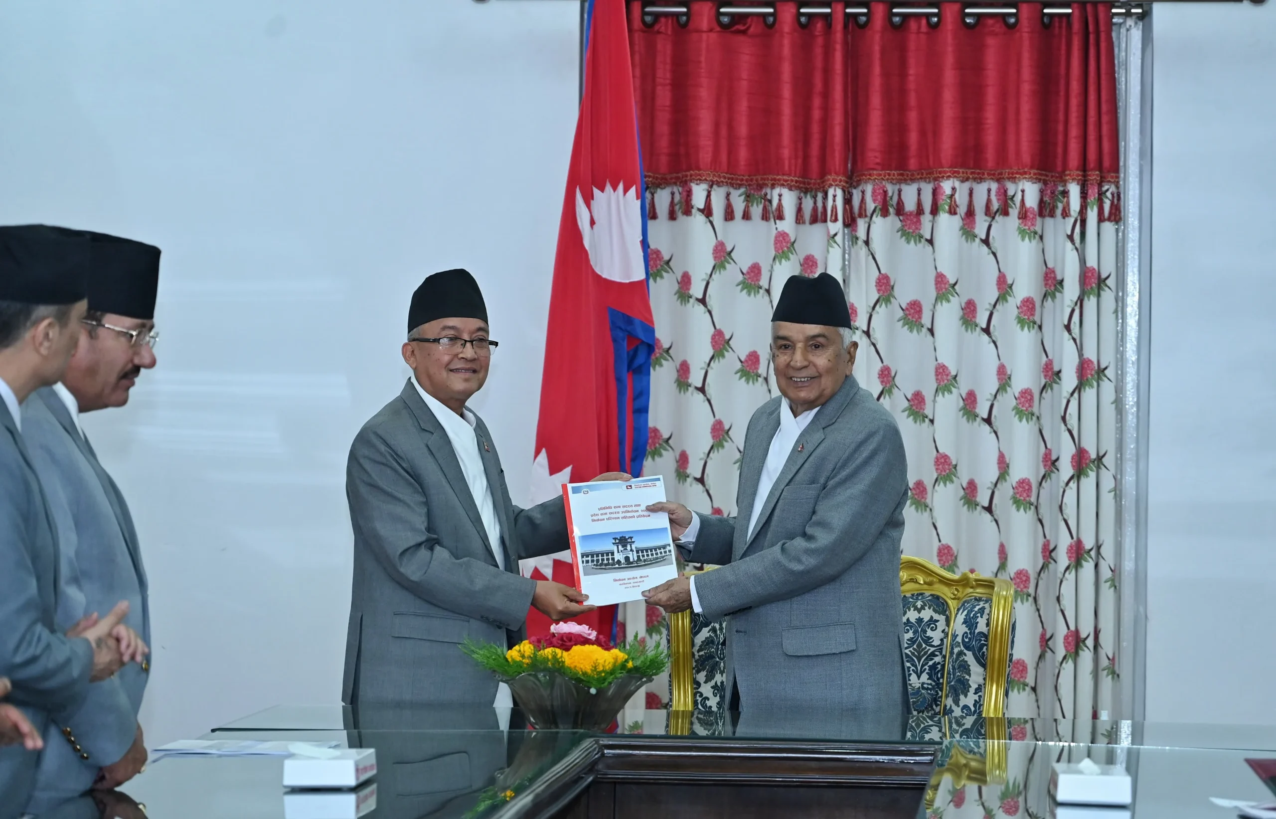 काठमाडौँ । यही बैशाख १५ गते सम्पन्न उपनिर्वाचनको मतपरिणम सहितको प्रतिवेदन आज राष्ट्रपति समक्ष निर्वाचन आयोगले पेश गरेको छ । राष्ट्रपति भवन शीतल निवासमा बिहीबार आयोजित एक कार्यक्रममा प्रमुख निर्वाचन आयुक्त दिनेशकुमार थपलियाले सो प्रतिवेदन राष्ट्रपति रामचन्द्र पौडेल समक्ष पेश गरेका छन् ।