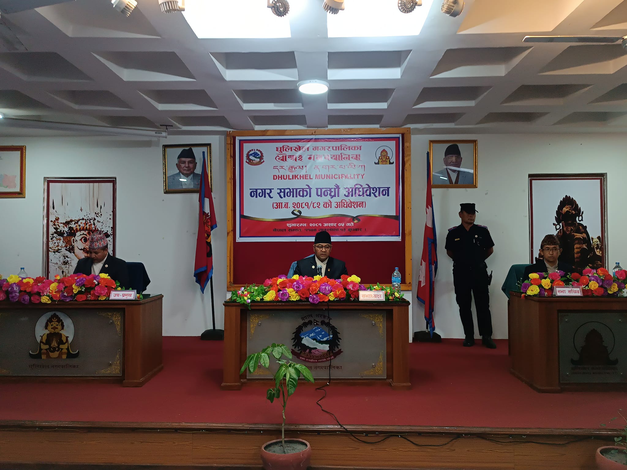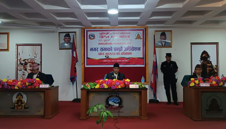 काभ्रे । धुलिखेल नगरपालिकाको १५ औं नगर सभा सम्पन्न भएको छ । सभाले आगामी आर्थिक बर्षका लागि धुलिखेल नगरपालिकाले १ अर्ब ५ करोड ९५ लाख २५ हजार रकम विनियोजन गरेको छ । धुलिखेल नगरपालिका नगर सभाको १५ औं नगर सभामा नगर प्रमुख अशोक ब्याञ्जुले आगामी आर्थिक बर्षका लागि बजेट प्रस्तुत गरेका थिए ।