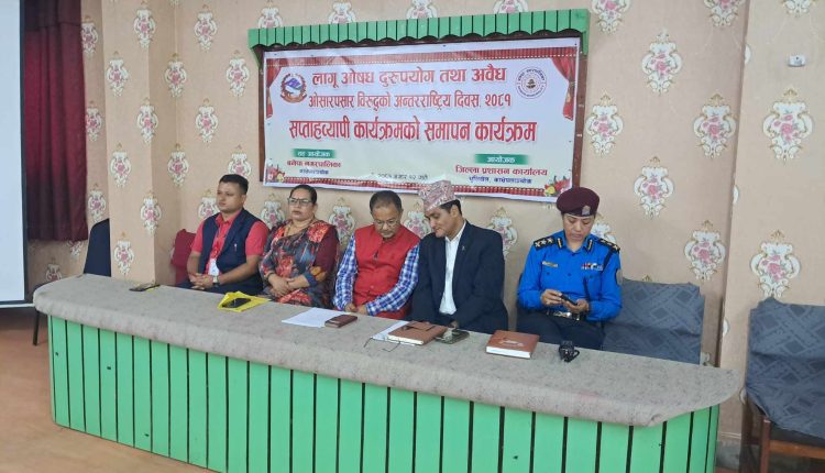 काभ्रे । ‘लागुऔषध दुरुपयोग विरुद्ध लडौँ, रोकथाममा जोड दिऔँ’ भन्ने मूल नारासहित लागुऔषध दुरुपयोग तथा अवैध ओसारपसारविरुद्ध अन्तरराष्ट्रिय दिवस–२०८१ काभ्रेमा समापन गरिएको छ । जिल्ला प्रशासन कार्यालय काभ्रेपलाञ्चोकको आयोजना तथा बनेपा नगरपालिकाको सहआयोजनामा आज विहान प्रभातफेरी कार्यक्रमसहित नगरको हलमा एक कार्यक्रमबिच समापन गरिएको हो ।