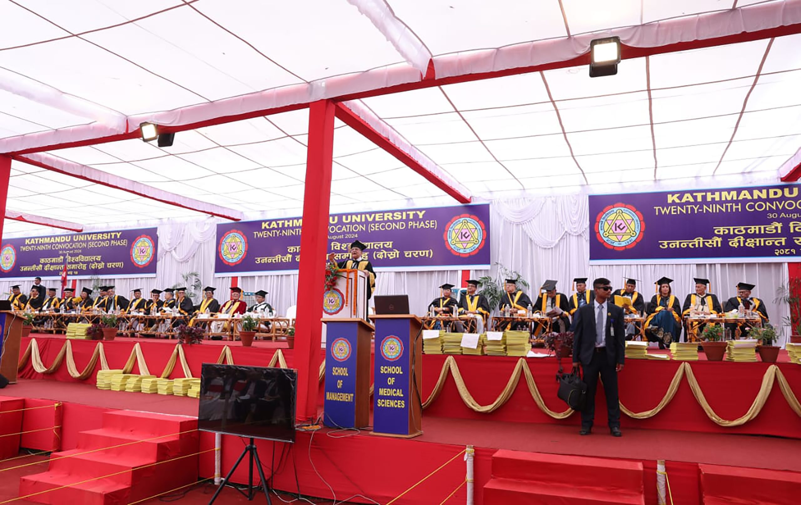 समारोहमा शिक्षा, विज्ञान तथा प्रविधि मन्त्री एवं केयूको सहकुलपति विद्या भट्टराईको उपस्थिति रहेको थियो । आज स्कुल अफ आर्टस्, एजुकेशन, इन्जिनियरिङ्ग, म्यानेजमेन्ट, मेडिकल साईन्सेज र साईन्स विद्याका २ हजार ३ सय १४ विद्यार्थी दीक्षित भएका छन् । दीक्षितमध्ये १ हजार १ सय ८६ अर्थात ५१ दशमलव २५ प्रतिशत छात्र र १ हजार १ सय २८ अर्थात ४८ दशमलव ७५ प्रतिशत छात्रा छन् ।
