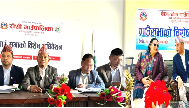 यस्तै रोशी गाउँपालिकाले बाढीपहिरोले ठूलो जनधनको क्षति पु¥याएपछि १५औं अधिबेशनले चालु आर्थिक बर्षको योजनाका लागि बिनियोजित बजेटबाट केही प्रतिशत कटौती गरी विपद् ब्यवस्थापन गर्न गत कात्तिक ३० गते नै विशेष सभामार्फत निर्णय गरेको थियो ।