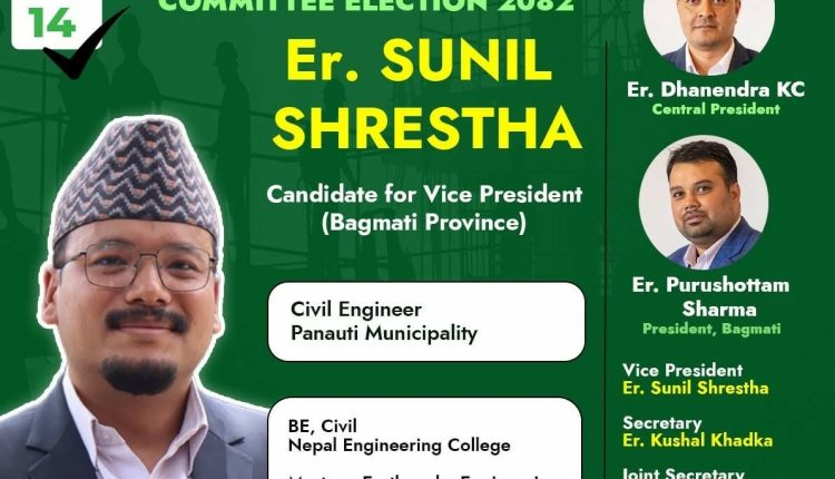 यस्तै उपसभापतिमा उम्मेदवारी दिएका श्रेष्ठले आफूले बागमती प्रदेशका समग्र इन्जिनियर र आर्किटेक्टहरुको हितका लागि काम गर्ने प्रतिवद्धता व्यक्त गरे । धनेन्द्र केसी नेतृत्वमा रहेको टिमले उम्मेदवारी घोषणा गरिसेको छ ।