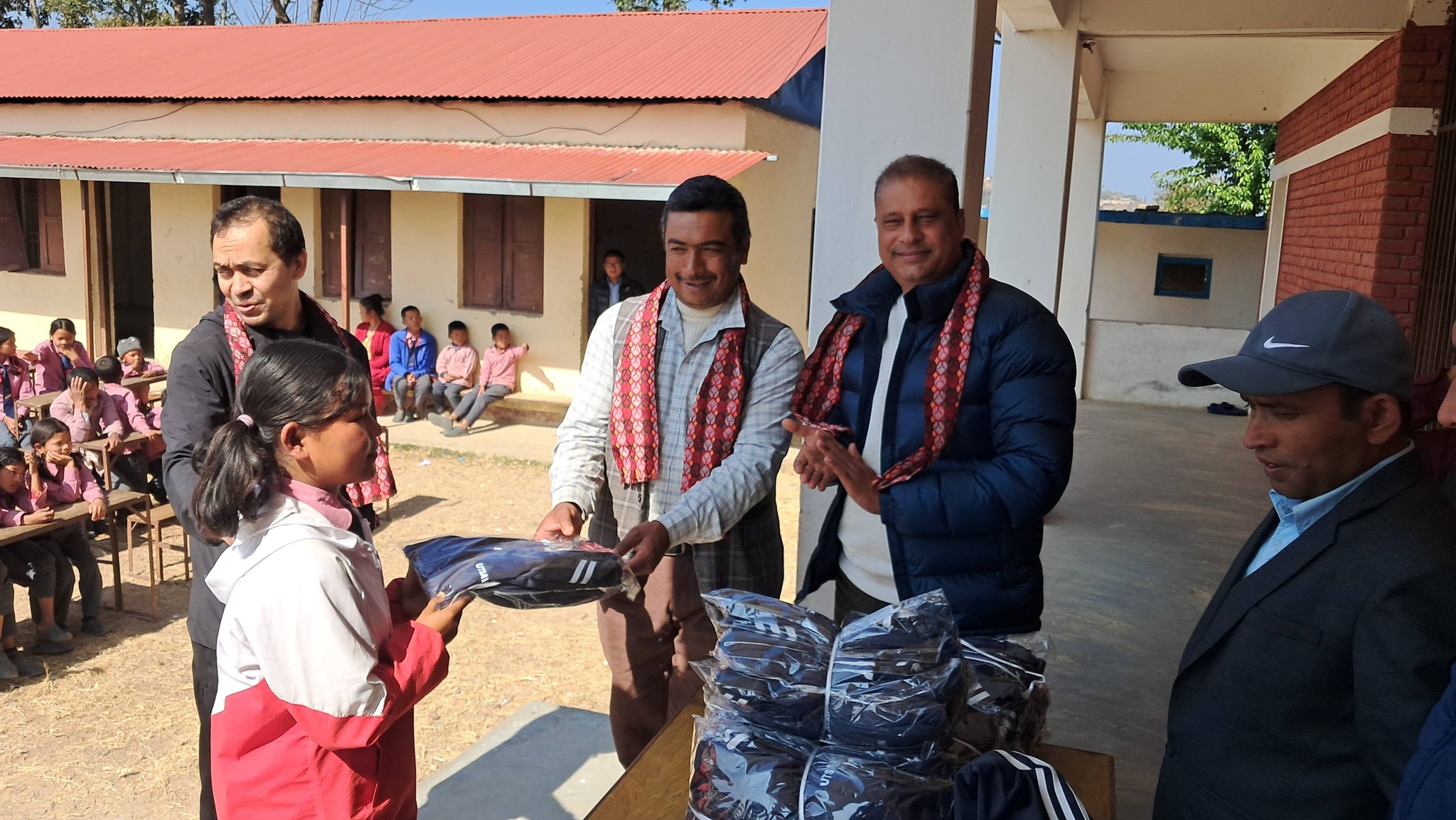 उनै दाहालले अमेरिकाबाट आएको सहयोग रकमबाट आज सोमबार विद्यार्थीहरुलाई ट्रयाकसूट हस्तातरण गरिएको छ ।